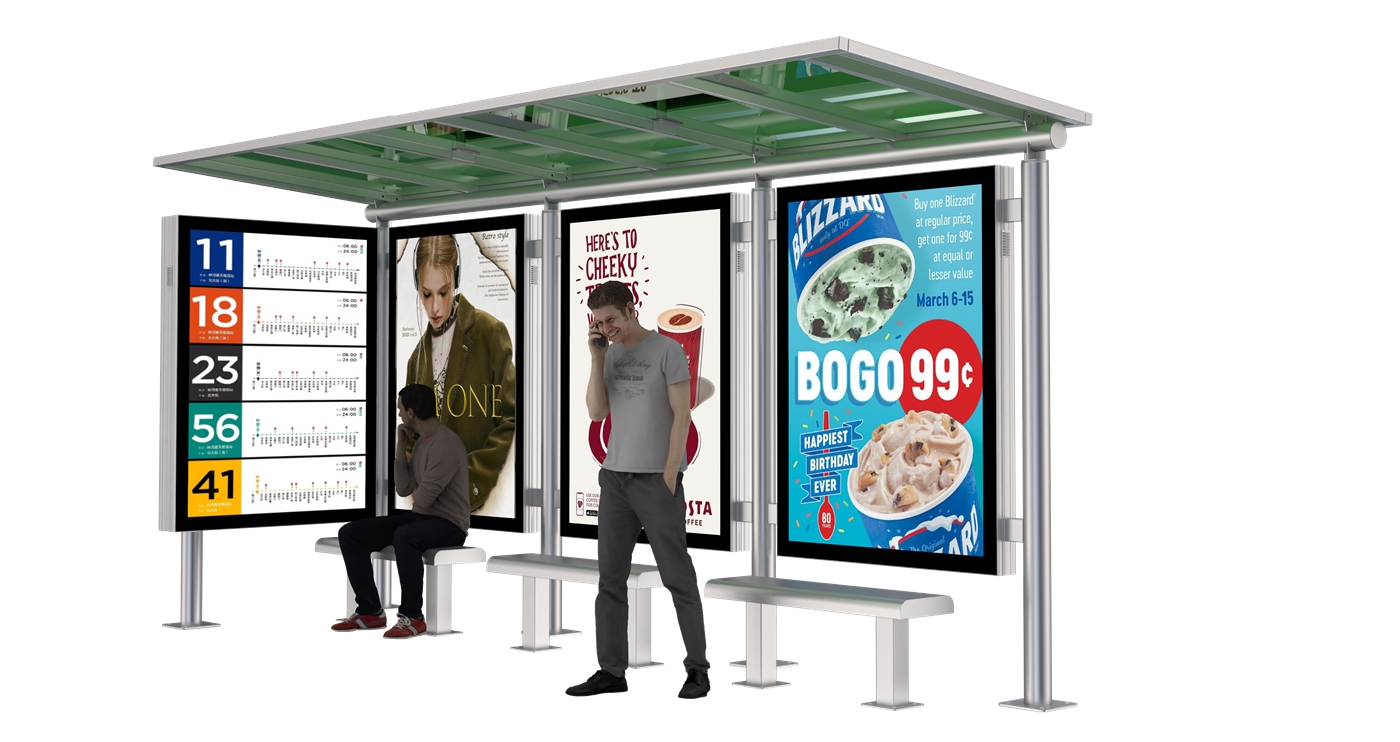 Bus Shelter with Map Display is a classic-style urban transit facility forged from premium galvanized steel, boasting superior corrosion resistance and enduring sturdiness to stand up to diverse outdoor urban conditions. This timeless shelter features a clear map display panel for easy passenger navigation, paired with four advertising light boxes that offer ample commercial and public information display space. It retains the classic design’s refined practicality, with a solid structure that provides a safe, comfortable waiting area for commuters. Blending functional utility with classic aesthetics, it’s a reliable, well-rounded choice for municipal public transportation infrastructure.