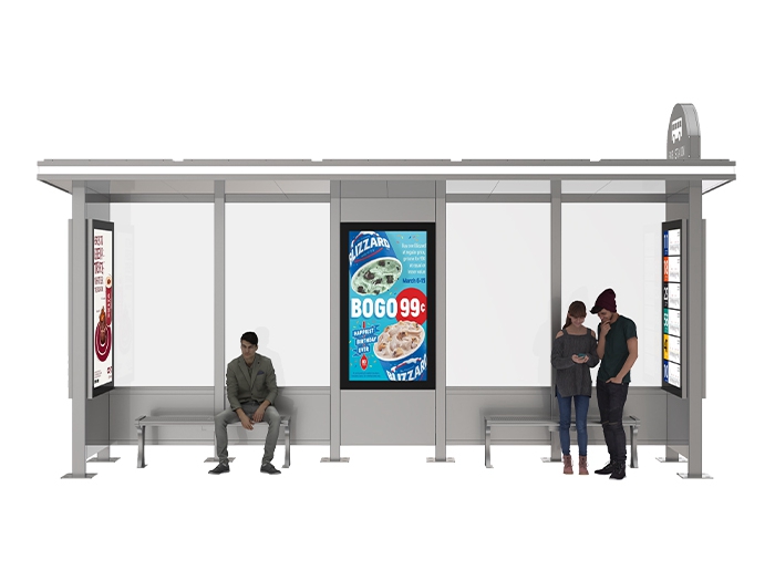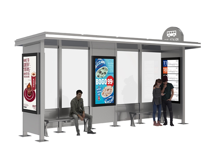 Bus Stop Shelter with Display is a premium intelligent transit facility made of high-quality galvanized steel, tailored for modern urban smart public transit networks. It is fully equipped with high-definition LCD advertising players for dynamic content display and integrated with an efficient solar power system for eco-friendly energy supply. The robust galvanized steel structure features excellent outdoor corrosion resistance and structural sturdiness, fusing smart commercial functions with green energy solutions for long-lasting, reliable municipal transit infrastructure worldwide.