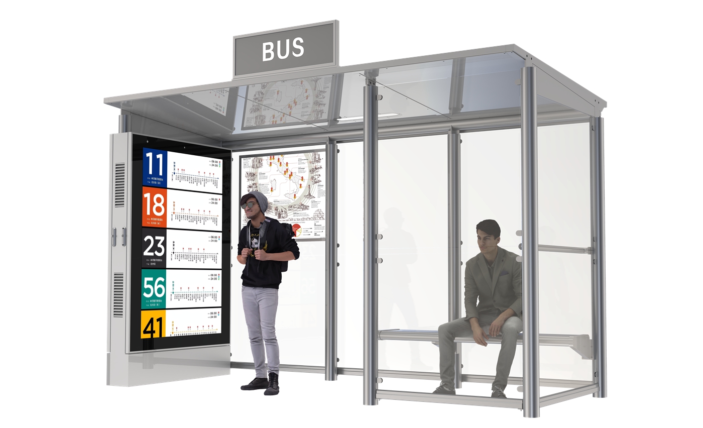 Our Modern Waiting Bus Shelter Design features a classic-style appearance, perfectly integrating timeless aesthetics with practical urban transit needs. It is meticulously crafted from high-quality stainless steel, ensuring superior durability, strong corrosion resistance and long-term reliable performance in various outdoor environments. Equipped with a high-definition P3 full-color LED screen light box, this classic bus shelter not only provides clear and vivid display effects for commercial promotion and public information release but also offers a comfortable and safe waiting space for passengers. Its modern design details complement the classic style, making it an ideal and dependable choice for municipal public transportation infrastructure upgrading.