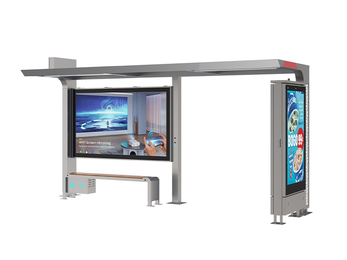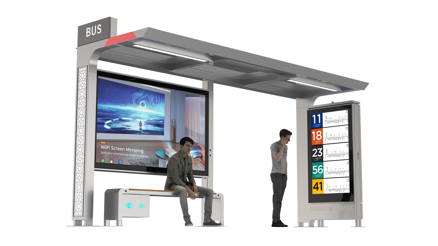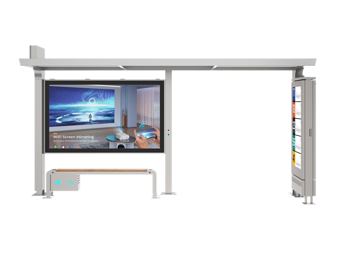 Smart Bus Stop is classic-style urban public transit facility, meticulously crafted from galvanized steel to ensure exceptional durability, corrosion resistance and long-term reliable service in outdoor environments. Integrated with multiple intelligent functions, it is equipped with solar power supply for energy-saving operation, along with wireless charging and USB charging ports to provide convenient power for passengers’ devices. Additionally, it features an LED screen light box, which displays real-time bus information and practical prompts. Blending classic timeless design with intelligent convenience and sturdy material, it perfectly meets modern urban transit needs and becomes a dependable choice for municipal infrastructure.