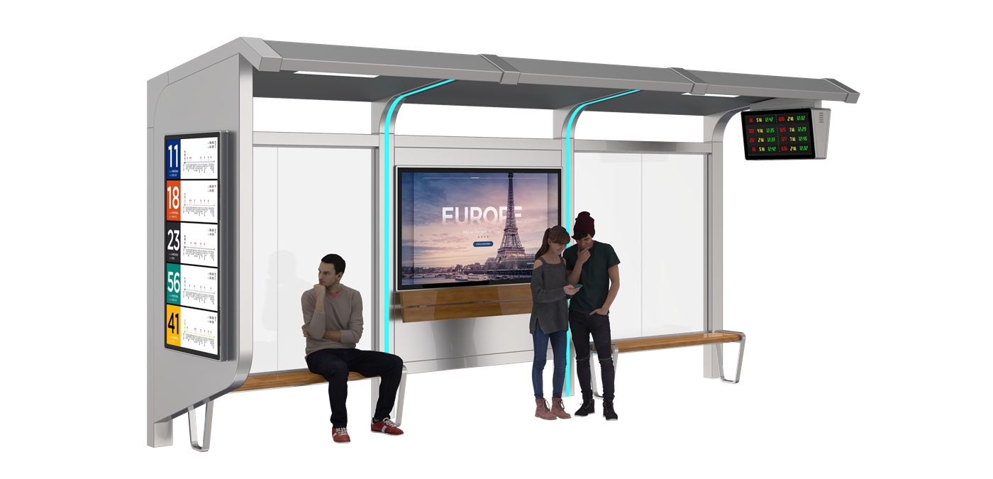 Bus Shelter with CCTV is a high-security intelligent transit facility made of premium galvanized steel, tailored for modern smart urban public transit networks. Equipped with professional CCTV monitoring systems, it delivers round-the-clock safety protection for passengers. The robust galvanized steel structure boasts excellent outdoor corrosion resistance and structural durability, integrating intelligent security functions with solid build quality to serve global municipal transit infrastructure needs.