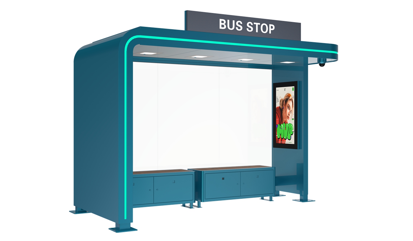 Bus Shelter with Signage is a high-performance intelligent transit facility crafted from premium galvanized steel, a professional smart model for modern urban transportation. Built with a robust galvanized steel structure for superior outdoor durability and corrosion resistance, it is fully equipped with clear guide signage, high-definition electronic display screens and security cameras. This shelter integrates practical navigation with smart monitoring and info release, serving as a reliable upgraded solution for municipal public transit infrastructure worldwide.