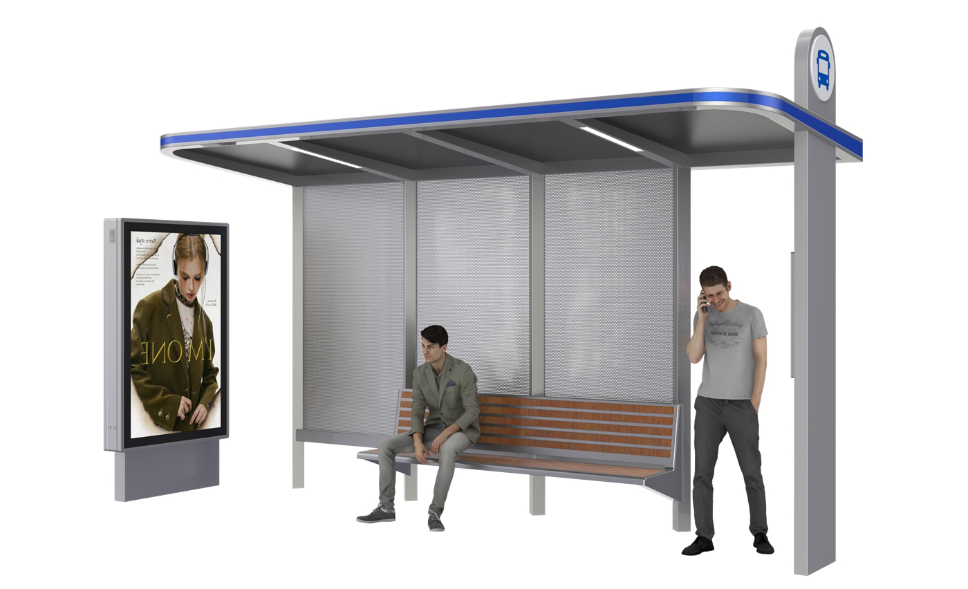 Modern bus stop is a classic-style transit shelter crafted from high-quality galvanized steel, blending sleek modern urban aesthetics with the timeless practicality of classic design. Built for lasting outdoor performance, the galvanized steel structure delivers superior corrosion resistance and structural sturdiness against all weather conditions. It features a side-mounted independent advertising lightbox, offering high-visibility display space for commercial promotions and public service information. This well-engineered shelter provides commuters with a safe, comfortable waiting area, making it a functional, durable choice for modern municipal public transportation infrastructure.