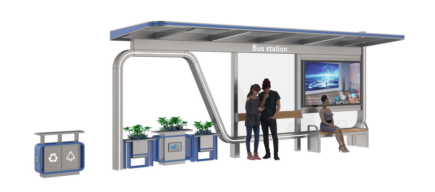 Outdoor Bus Stop Shelter for Sale is a multi-functional intelligent transit facility made of premium galvanized steel, designed for modern urban public transit construction needs. This smart shelter is equipped with convenient mobile charging functions, built-in trash bins and flower boxes for a more humanized and eco-friendly experience. Its robust galvanized steel structure features excellent outdoor corrosion resistance and structural sturdiness, ensuring long-lasting, reliable performance for global municipal infrastructure projects.
