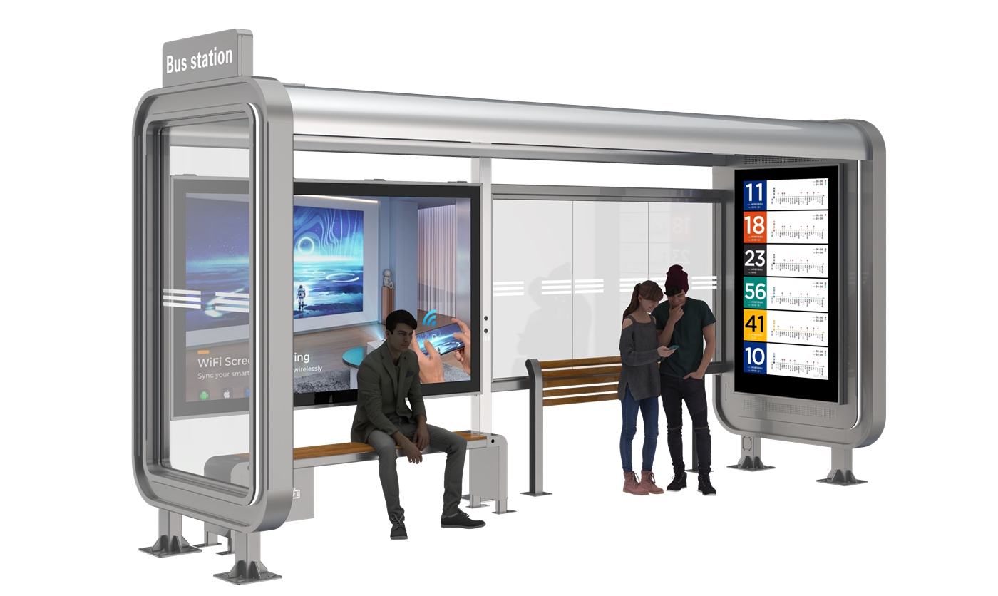 Outdoor Smart Bus Stop Shelter is a high-performance intelligent transit facility crafted from premium galvanized steel, engineered for all-weather outdoor urban use. Built to withstand diverse climatic conditions, it is equipped with high-definition LCD advertising players that enable dynamic commercial display and real-time transit info release. The robust galvanized steel structure delivers exceptional outdoor corrosion resistance and long-term structural stability, perfectly blending durable weatherproof build with smart functional design for global municipal public transit infrastructure.