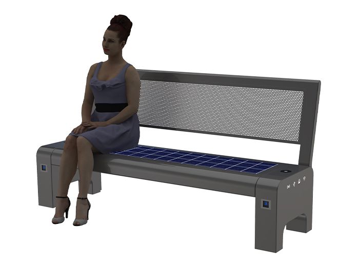 Smart Charging Bench Outdoor is a solar‑powered public seating solution designed for parks, streets and urban public areas. Made of sturdy galvanized steel, it provides excellent durability and weather resistance for long‑term outdoor use. Powered by an efficient MPPT solar system and reliable lithium iron phosphate battery, it delivers stable and eco‑friendly energy. It supports wireless and USB fast charging, and is equipped with Wi‑Fi and Bluetooth speakers for daily convenience. With safe, practical and intelligent features, it improves public experience and creates modern smart outdoor spaces.