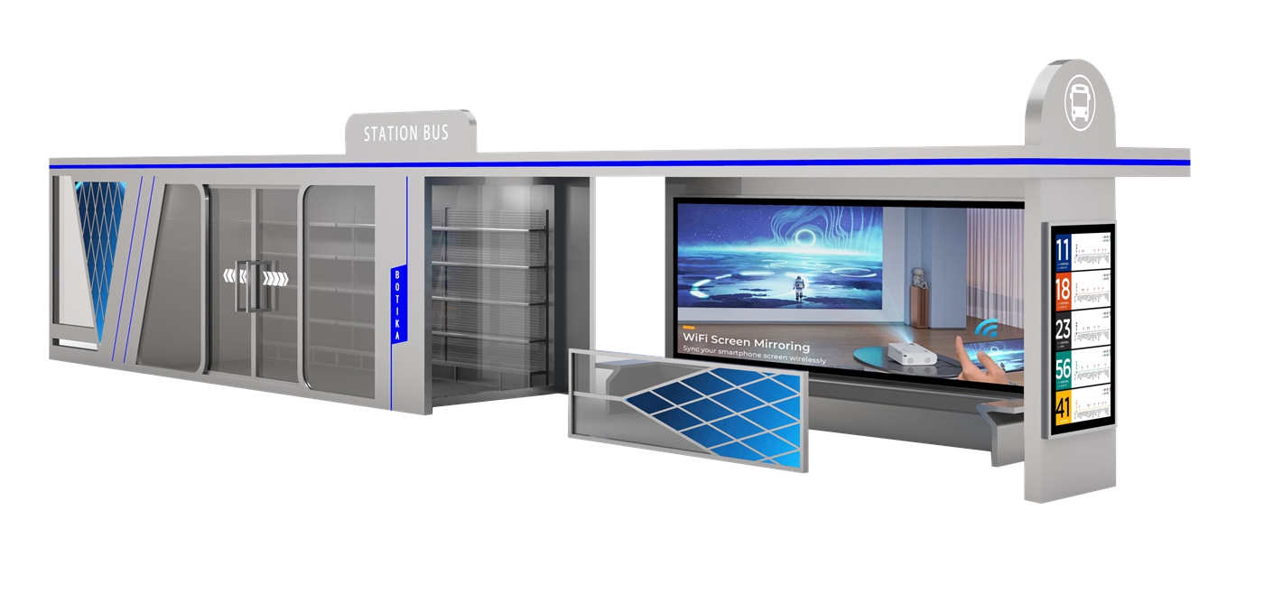Windproof Bus Shelter is a fully enclosed air-conditioned transit facility made of high-quality galvanized steel, custom-built for Northern Europe’s harsh windy and frigid climates. Solar-powered for self-sufficiency, it features LED billboards, wireless & USB charging ports, an ATM machine, and a dedicated enclosed retail zone for added convenience. The reinforced galvanized steel structure delivers exceptional wind resistance and sturdiness, with a premium AC system keeping the interior warm and cozy—an all-in-one smart hub for Nordic municipal transit infrastructure.